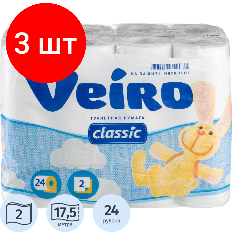 Туалетная бумага Veiro Classic белая, 3 уп. 24 рул.