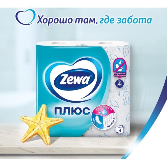 Zewa туалетная бумага Plus 2-х слойная Океан 4шт