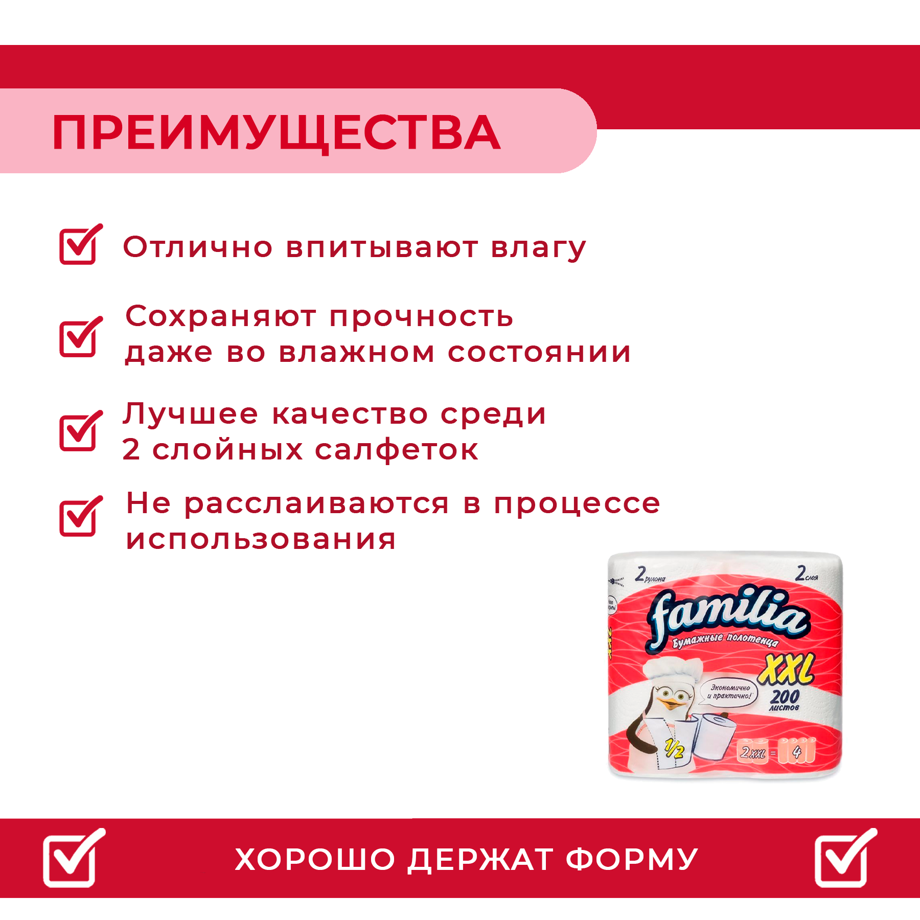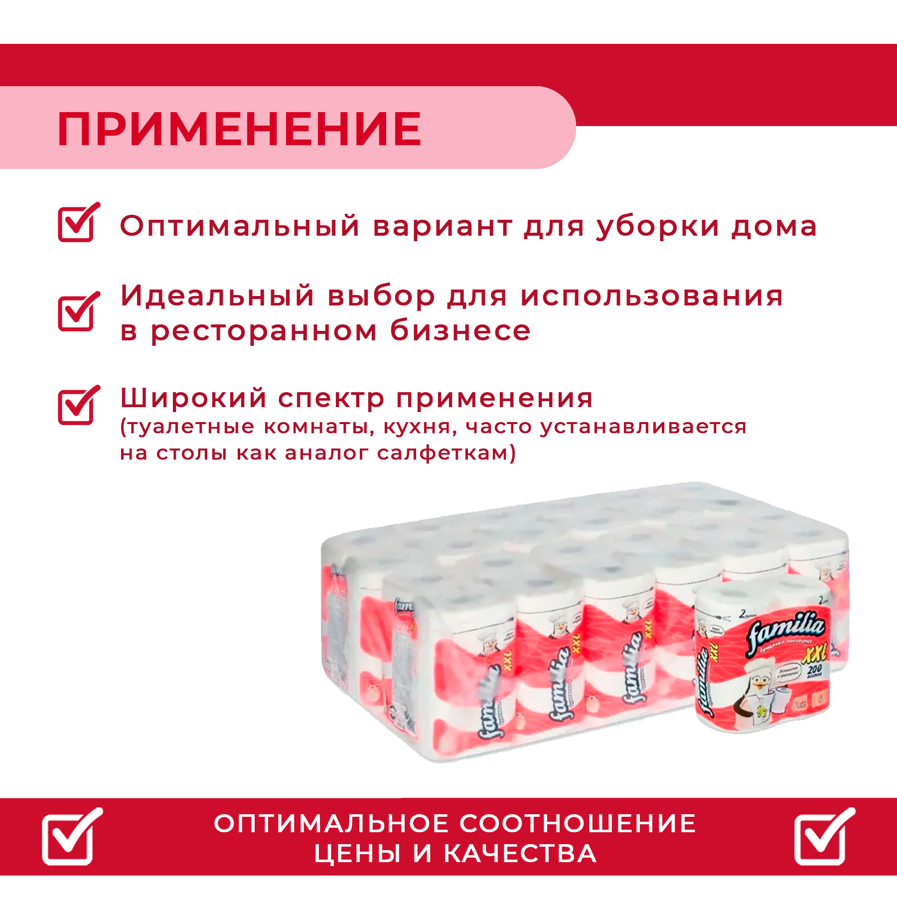 Familia Полотенца бумажные «Familia» белые 2 сл, XXL, 2 рулона, 200 листов в рулоне