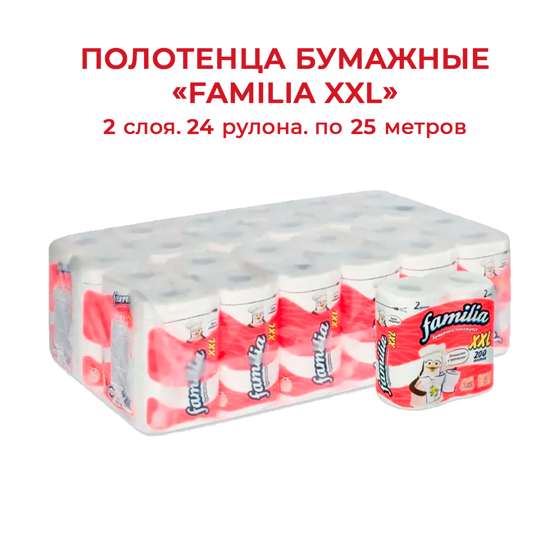 Купить Бумажные полотенца FAMILIA XXL 2-слоя 24 рулона по 25 метров