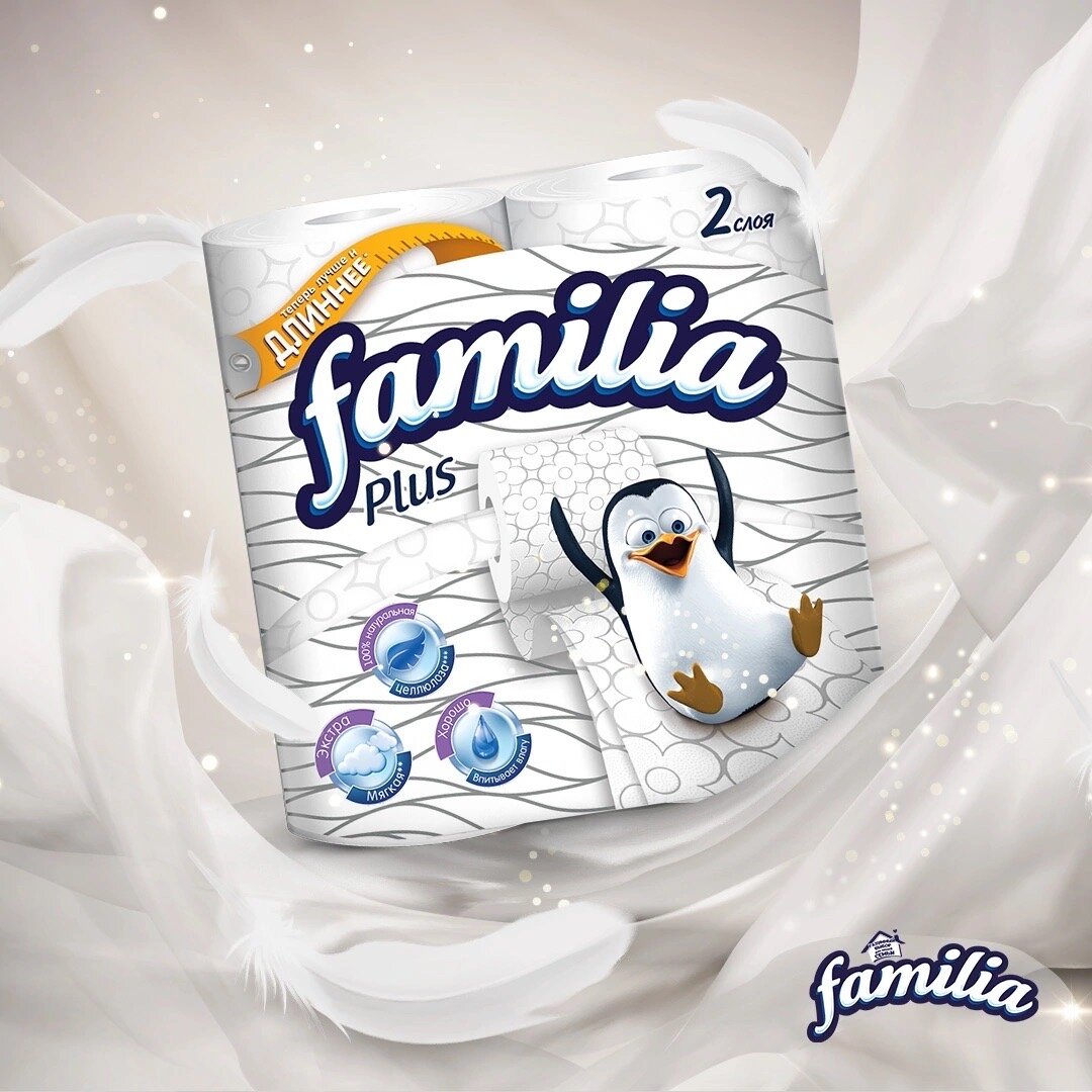 Туалетная бумага Familia plus белая 2 слоя, 4 рулона