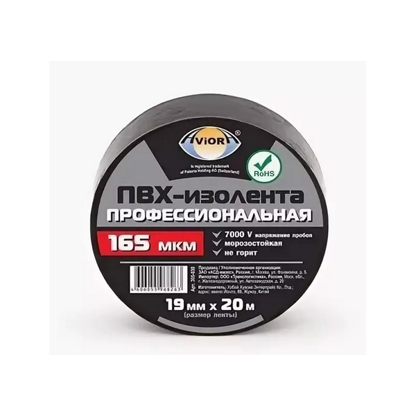 Изолента профессиональная ПВХ 19 мм * 20 м AVIORA (черная)