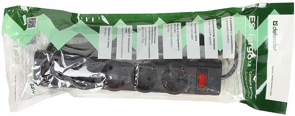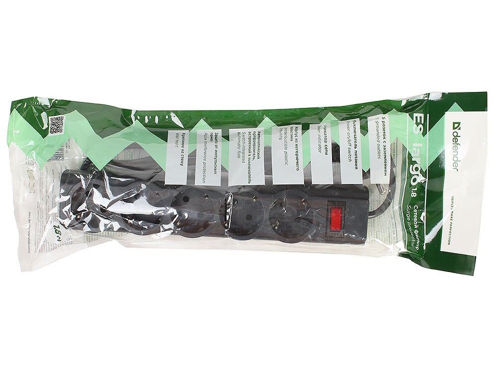 Сетевой фильтр DEFENDER ES largo 1.8 1.8 м, 5 розеток, черный