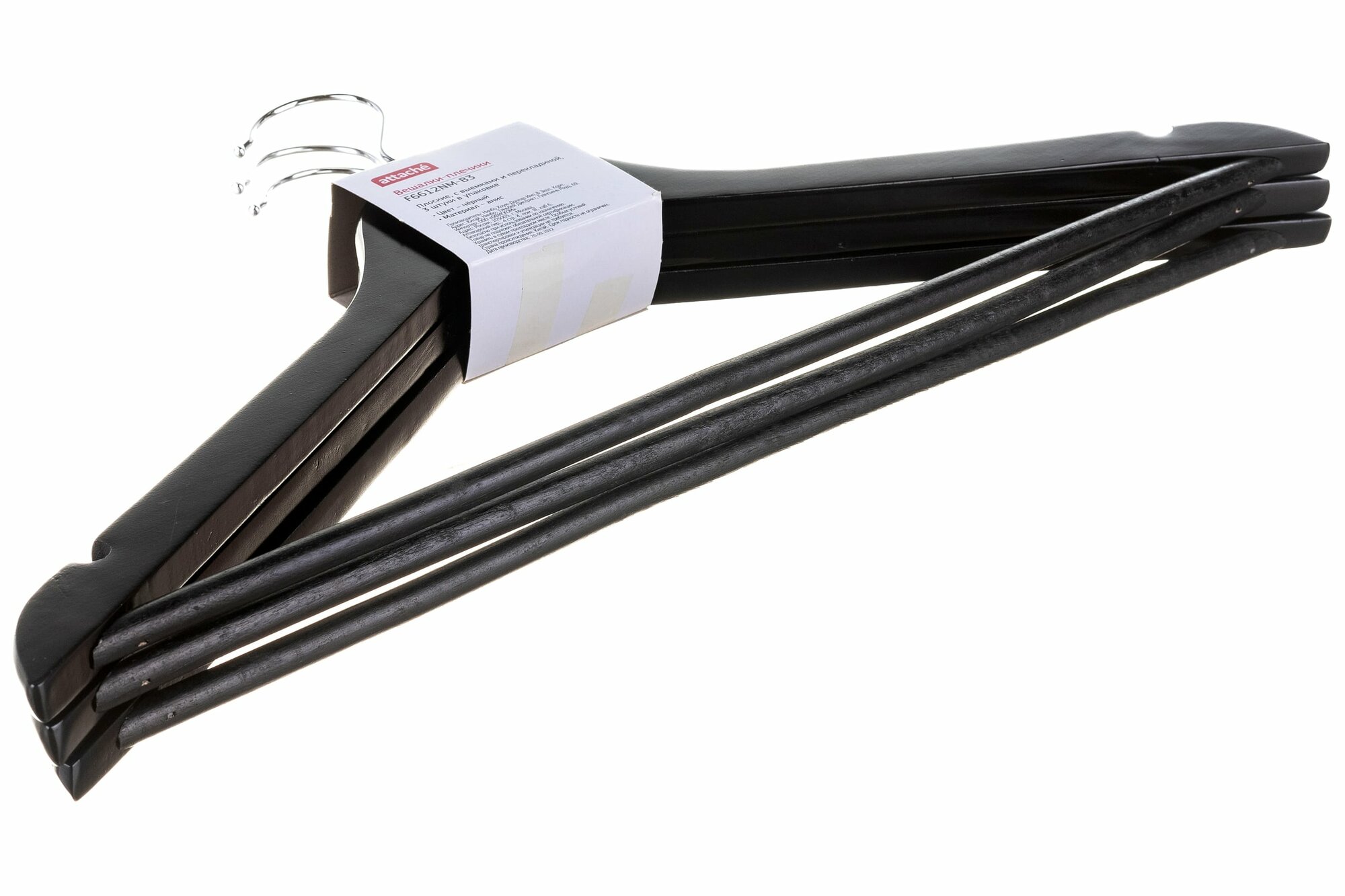 Вешалка-плечики ATTACHE деревянная, с выемками и перекладиной черная (размер 48-50, 3 штуки в упаковке)