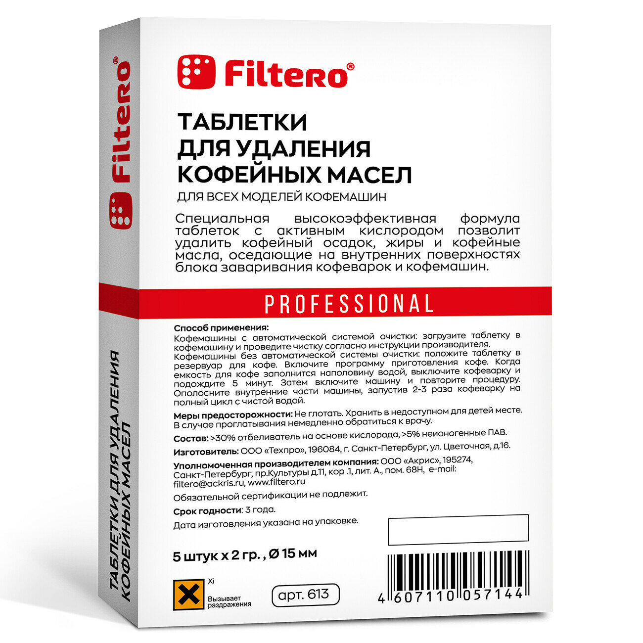 Таблетки от кофейных масел FILTERO 613, для удаления кофейных масел, 4 шт