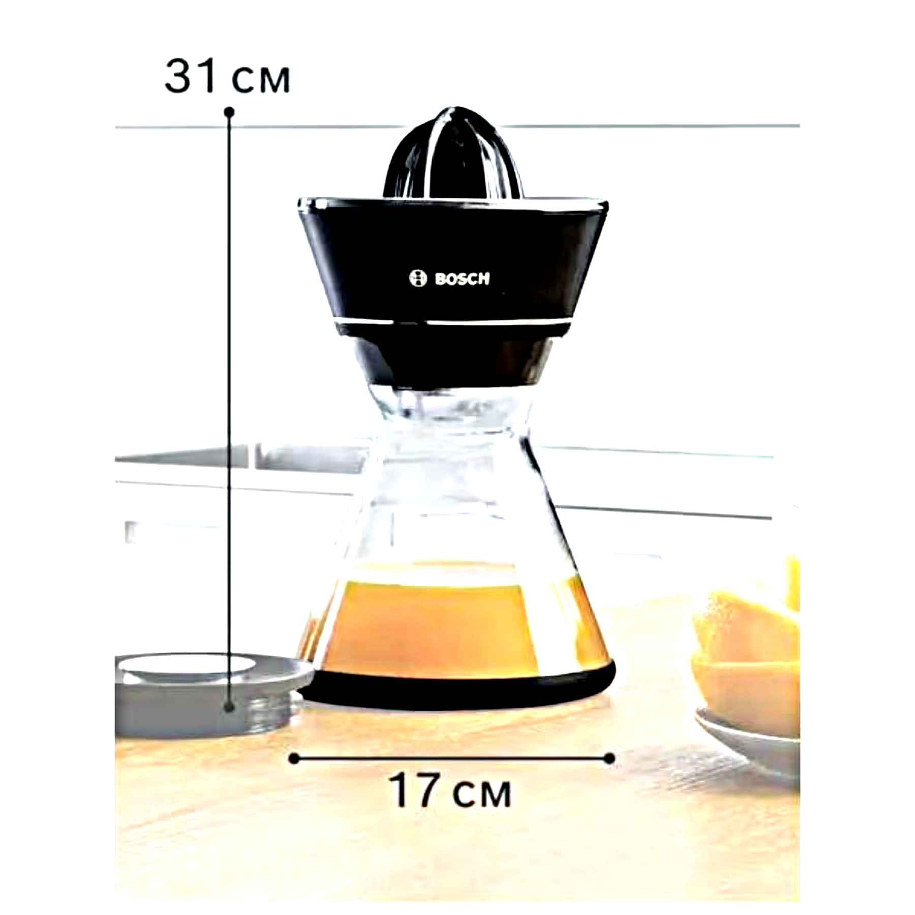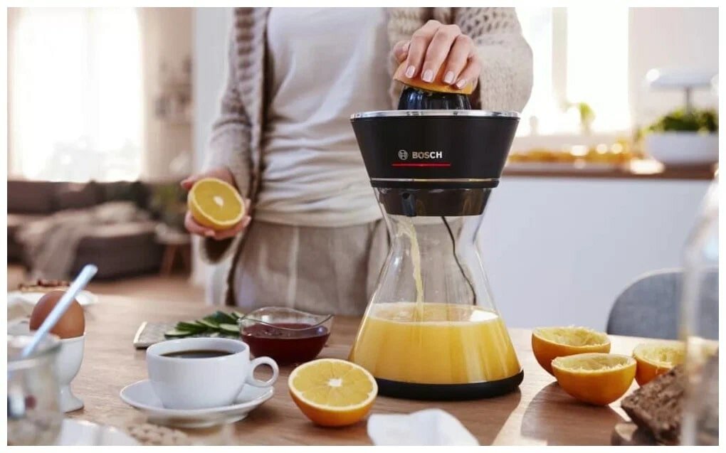 Купить Пресс для цитрусовых Bosch VitaStyle Citro MCP72GPB, универсальный пресс-конус для мелких и крупных фруктов, соковыжималка и пресс для цитрусовых 2-в-1, стеклянный графин 1,0 л, без BPA, детали можно мыть в посудомоечной машине, 40 Вт, черный