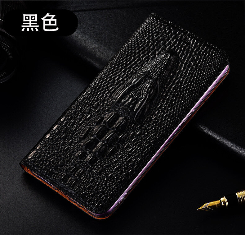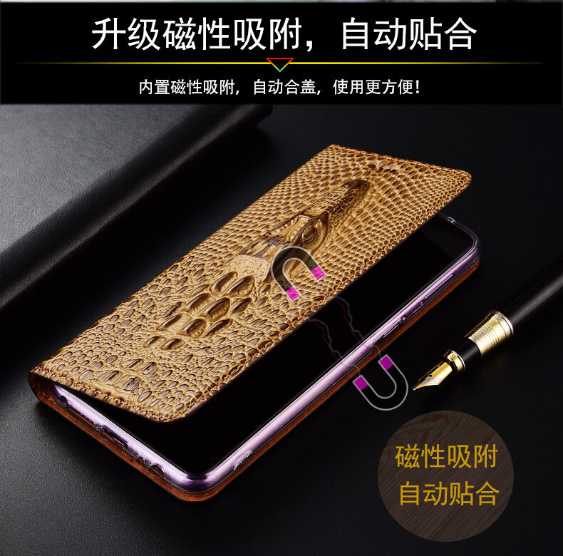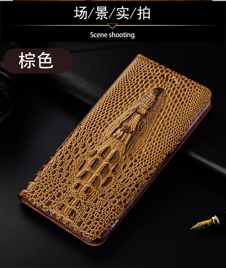 Чехол-раскладушка "Голова крокодила", для Realme Q2, кожаный, темно-коричневый интересное: