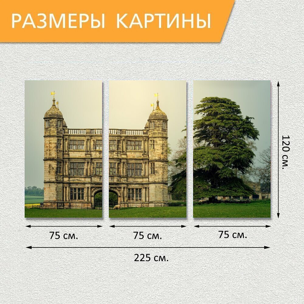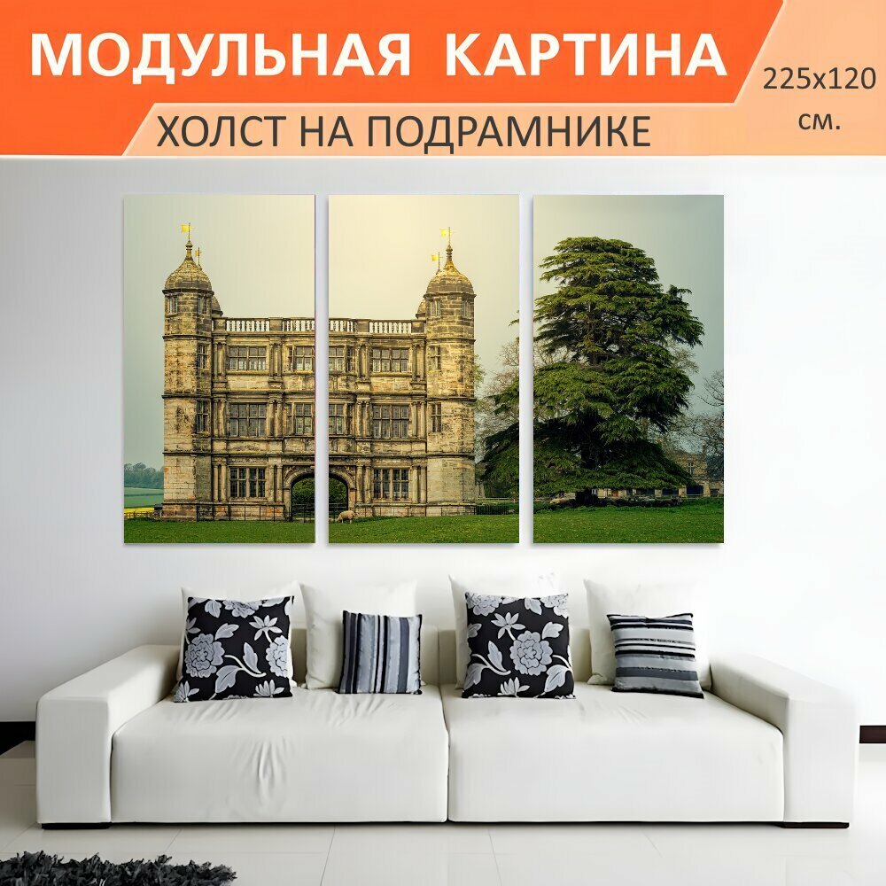 Купить Модульная картина на холсте "Замок, дерево, романтичный" триптих на подрамнике 225х120 см. для интерьера