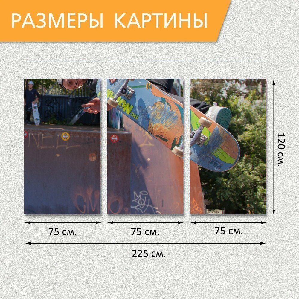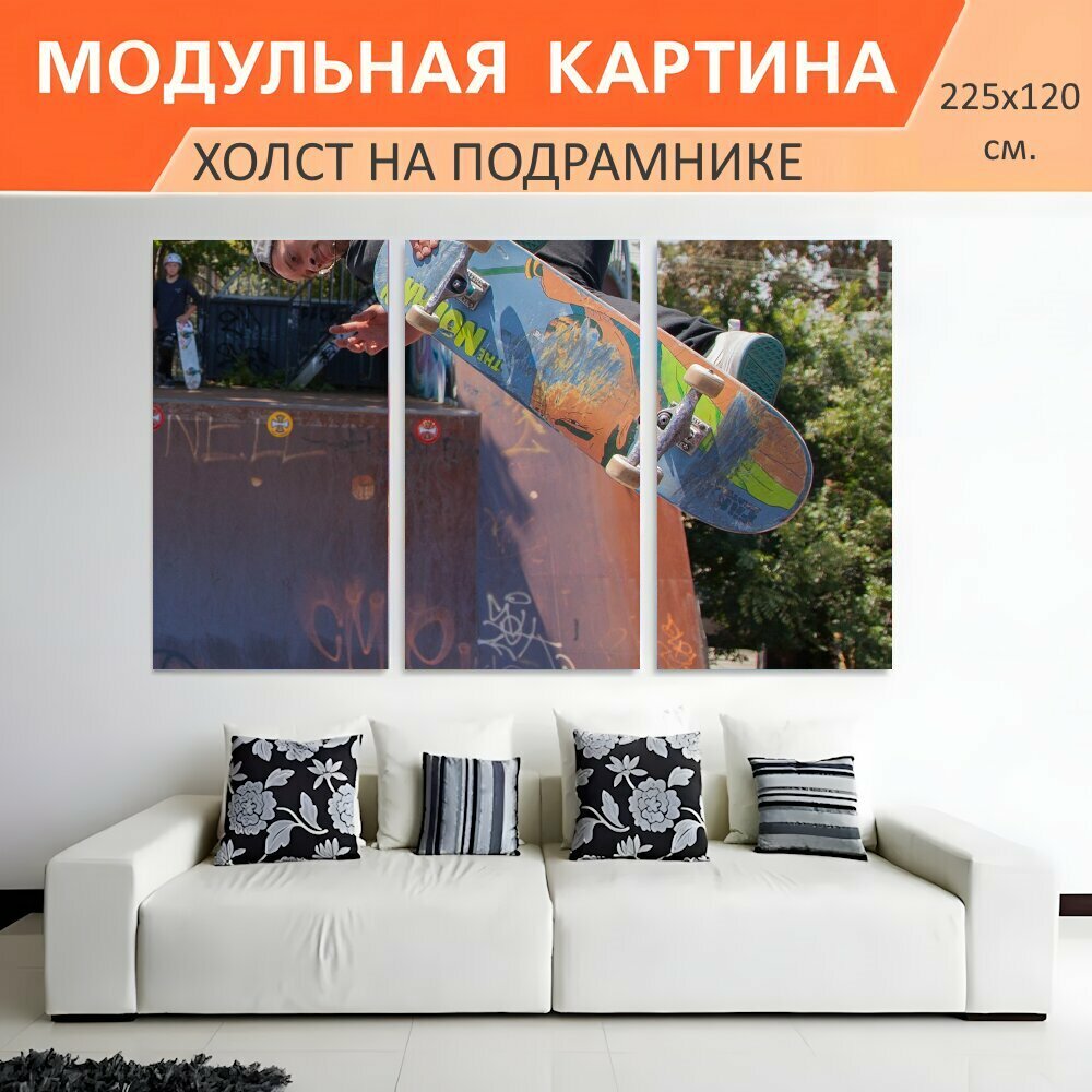 Модульная картина на холсте "Скейтбординг, кататься на коньках, скейтборд" триптих на подрамнике 225х120 см. для интерьера интересное: