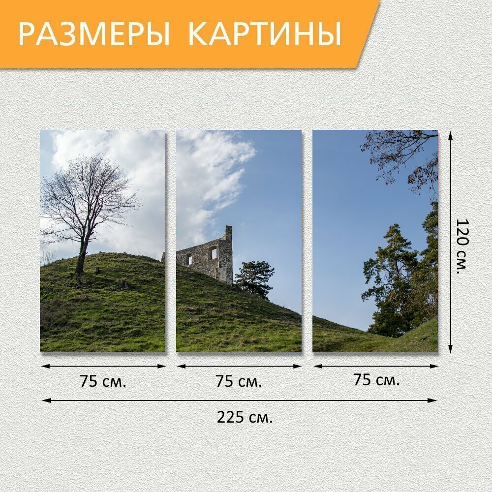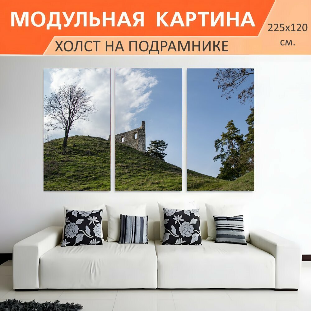 Купить Модульная картина на холсте "Строительство, замок, история" триптих на подрамнике 225х120 см. для интерьера