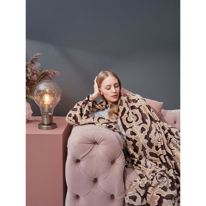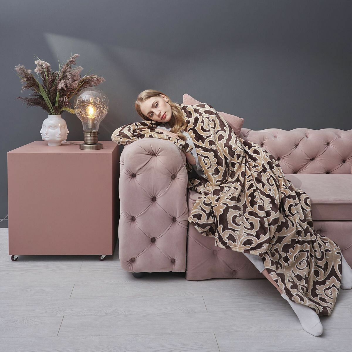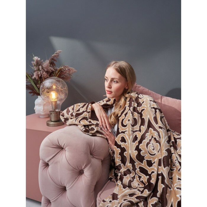 Велсофт ЗефирТекс Плед Regina, орнамент, коричневый (150х200 см,)