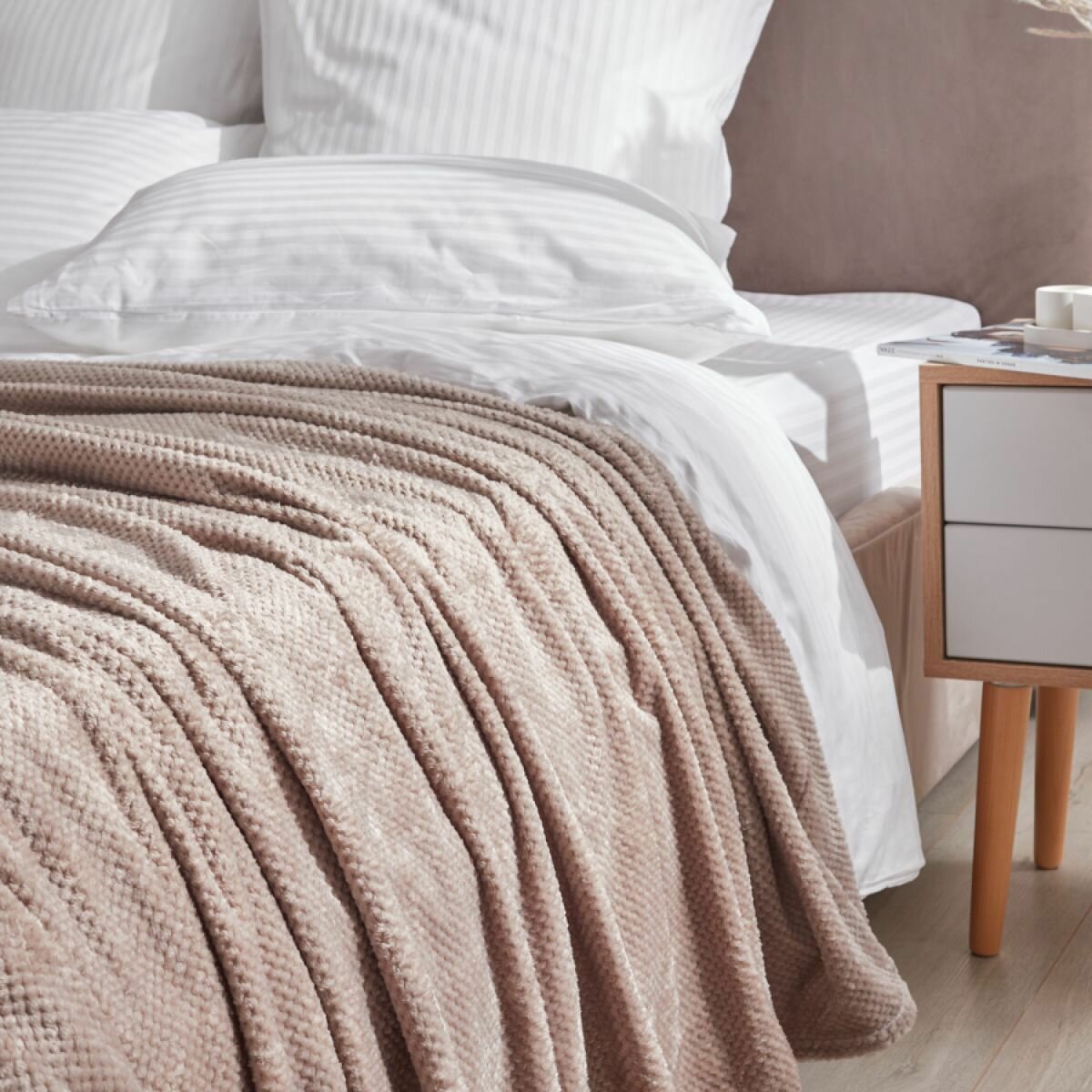 Купить Покрывало (плед), Guten Morgen, Велсофт, Жаккардовый, Моккачино, 150х200