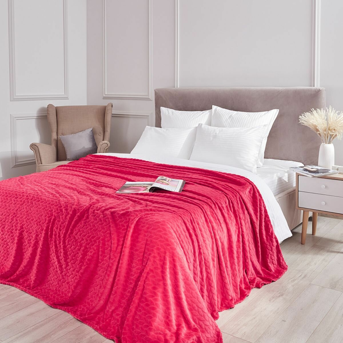 Купить Покрывало (плед), Guten Morgen, Велсофт, Жаккардовый, Маджента, 150х200