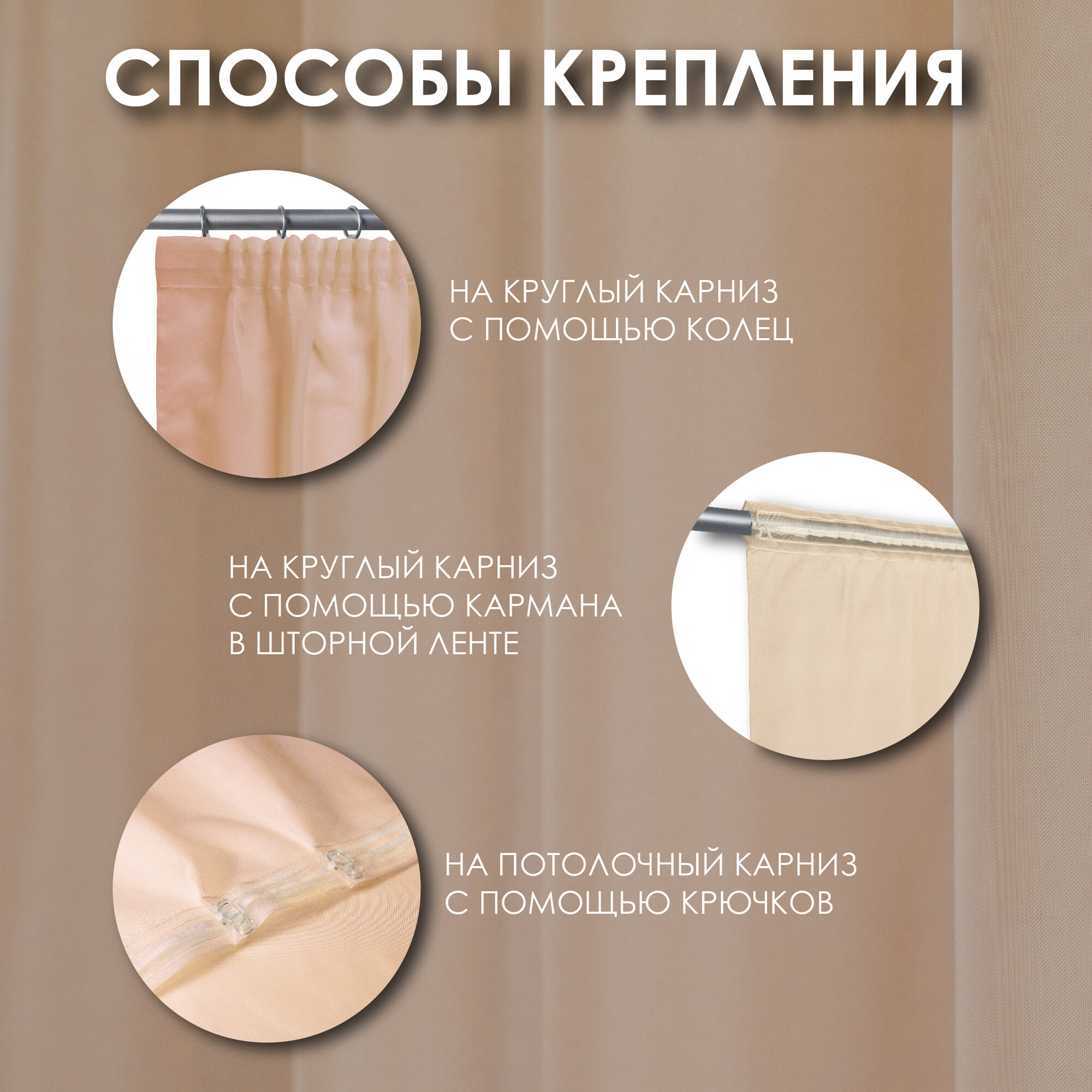 Штора на тесьме Pastel 300x285 см, вуаль, бежевый, Kauffort
