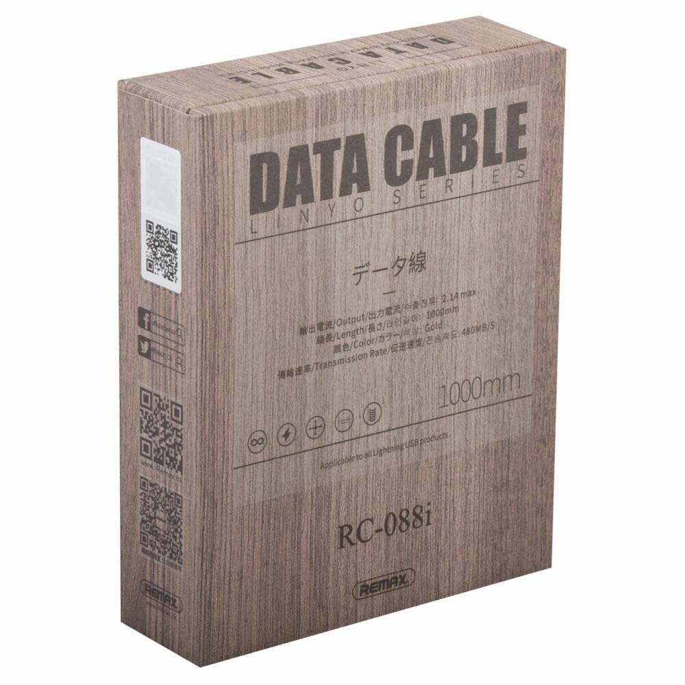 Дата-кабель USB 2.1A для Lightning 8-pin шкатулка дерево Remax Linyo RC-088i 1м Gold