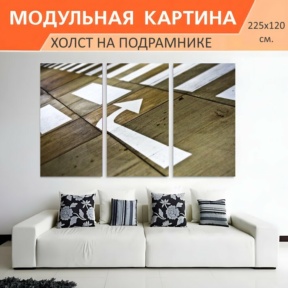 Купить Модульная картина на холсте "Дорожная разметка, дорога, отметка" триптих на подрамнике 225х120 см. для интерьера