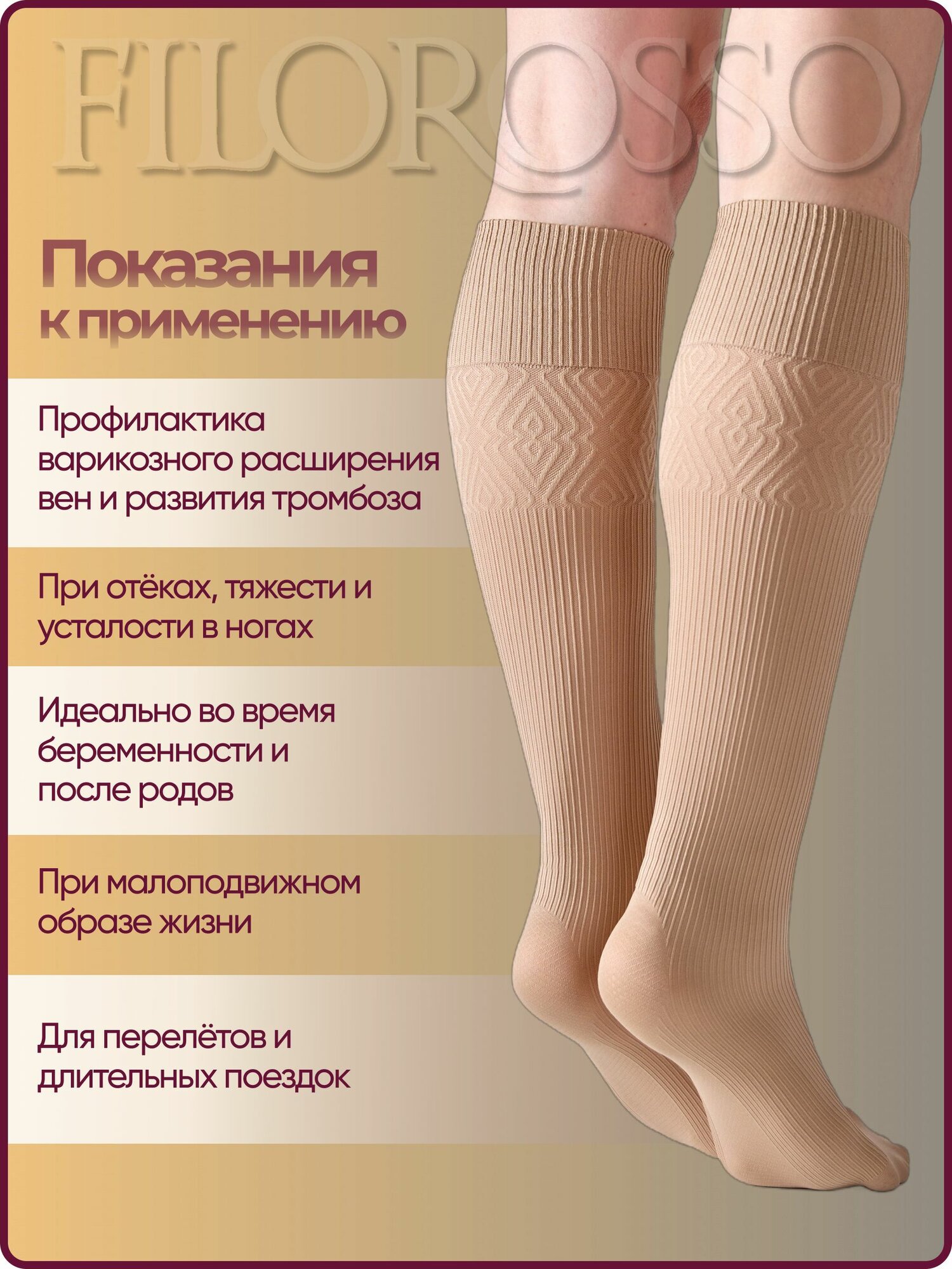 Гольфы компрессионные Filorosso Profilactica 140 den, 1 класс компрессии, бежевый, размер 2