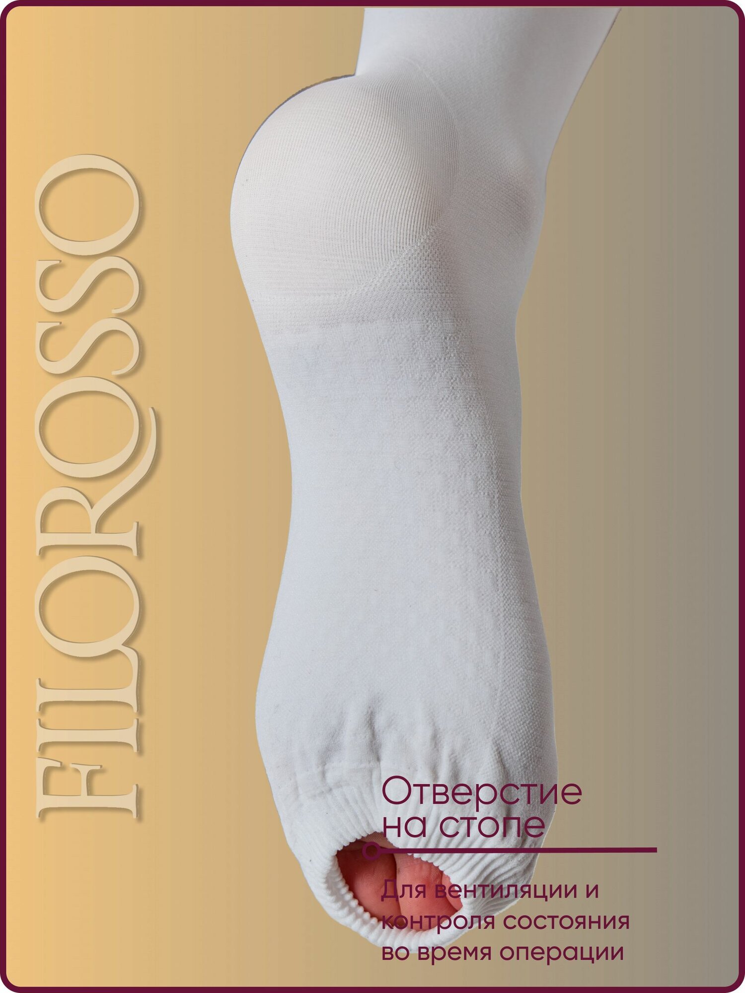 Чулки женские Госпитальные "Filorosso", 1 класс, 50 den, размер 3, белые, компрессионные лечебно-профилактические 5888