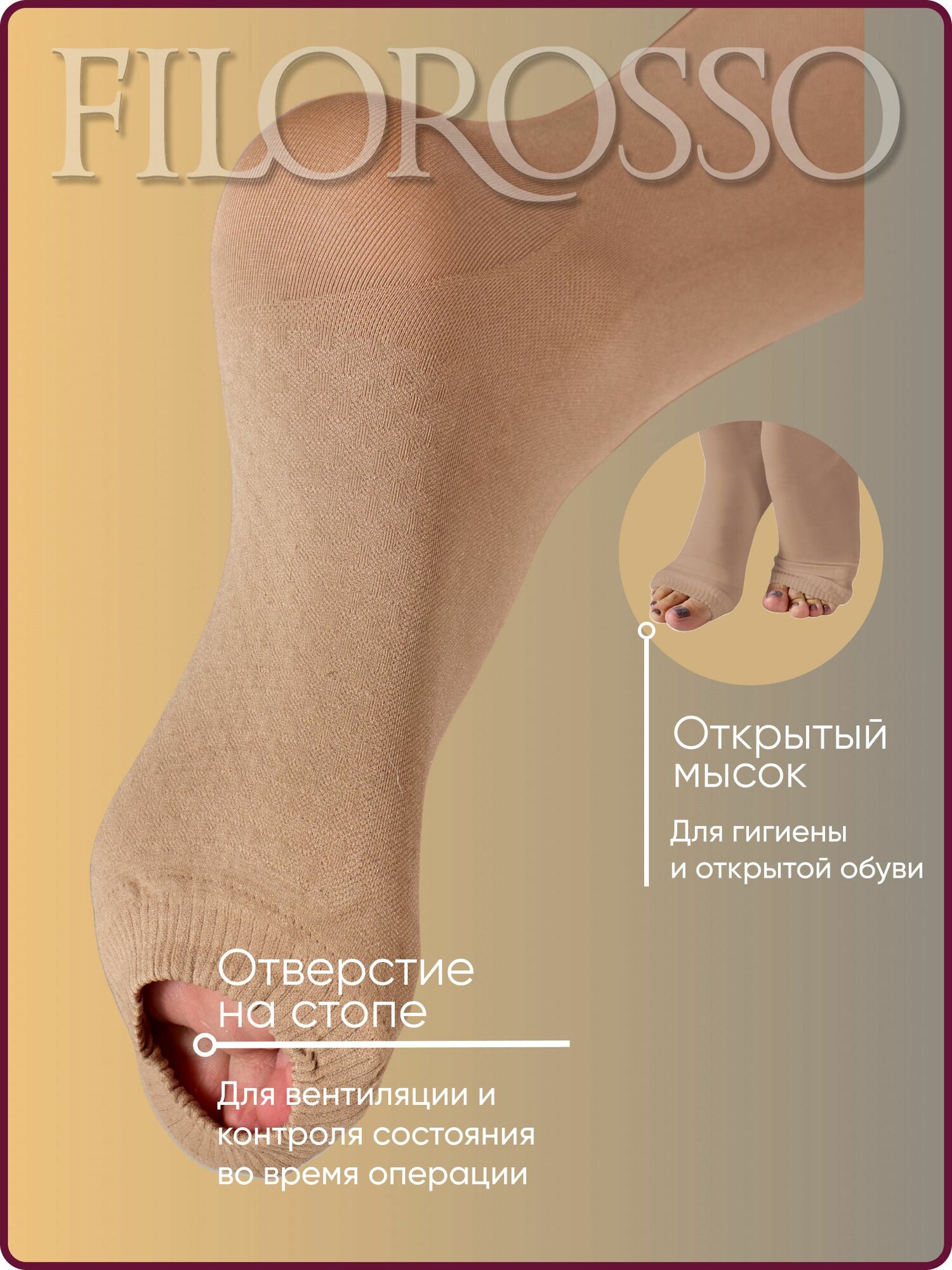 Чулки женские Госпитальные "Filorosso", 1 класс, 50 den, размер 4, бежевые, компрессионные лечебно-профилактические 5925