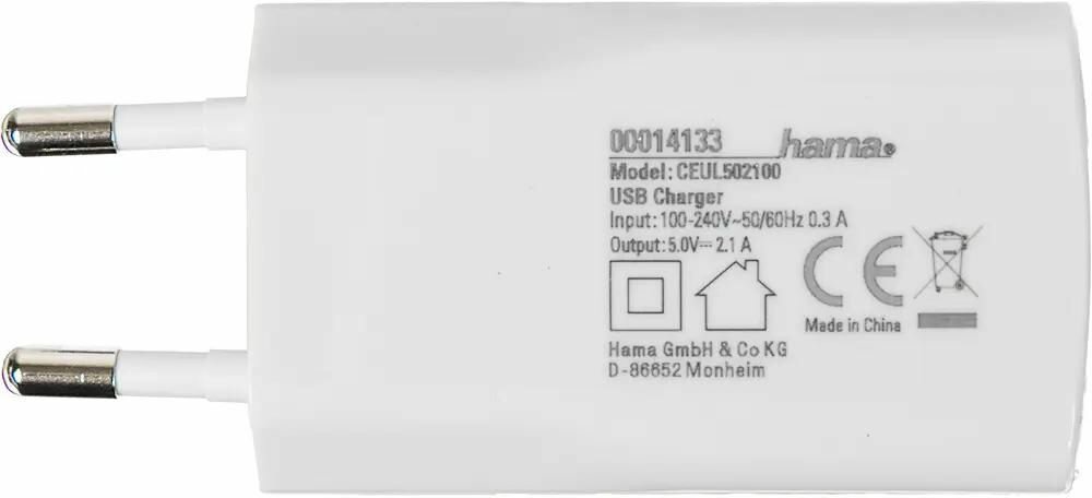 Купить Сетевое зарядное устройство Hama Piccolino H-14133 2.1A белый ( 00014133 )
