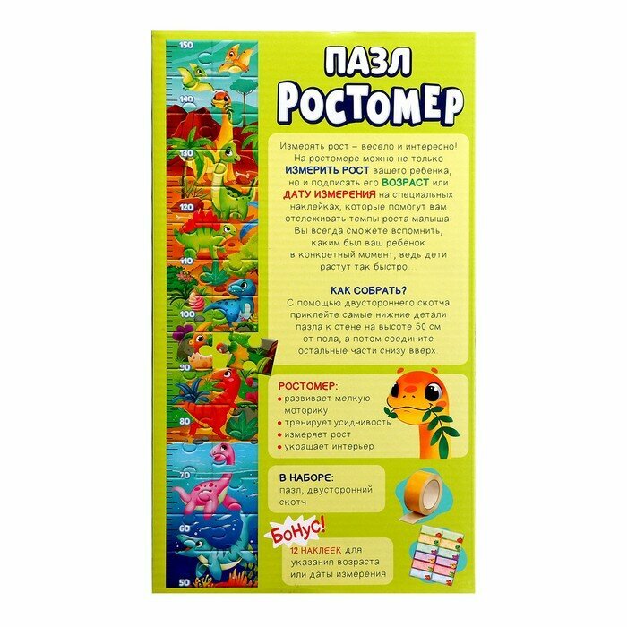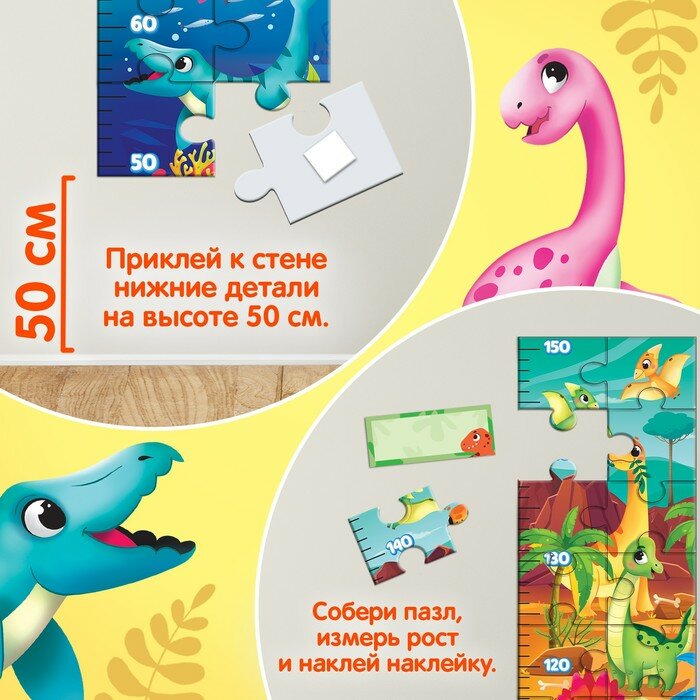 Купить Пазл-ростомер «Весёлые динозаврики», с наклейками