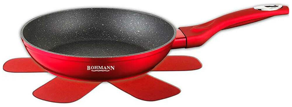 BOHMANN BH 1005-24MRB, Сковорода алюминиевая (диаметр: 24 см; цвет: красный; антипригарное покрытие; с текстильной подставкой)