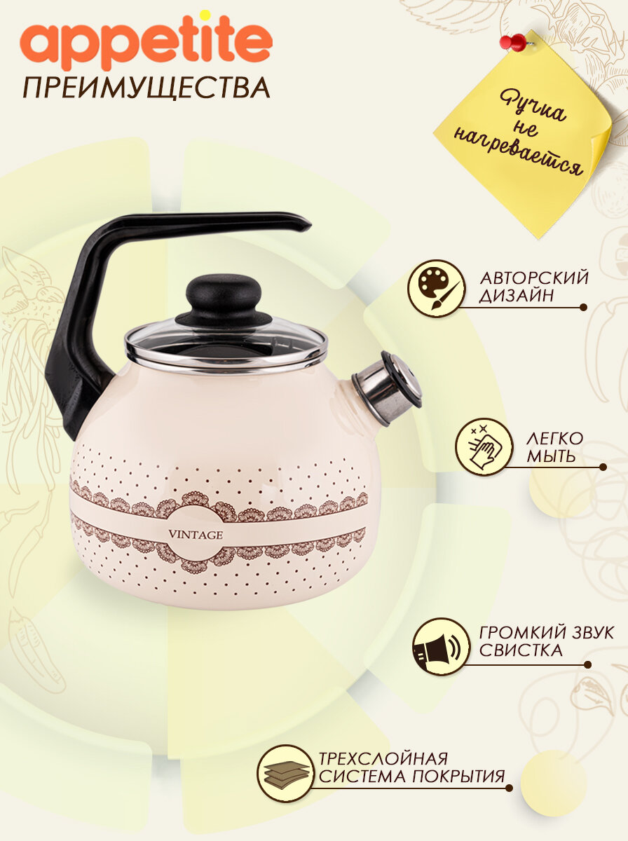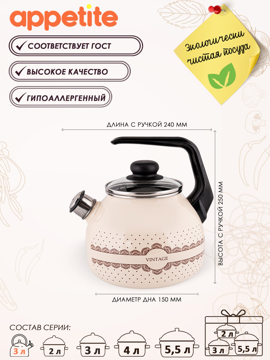 appetite Чайник эмал 3,0л со свистком Vintage 4с209я 4с209я Vintage .