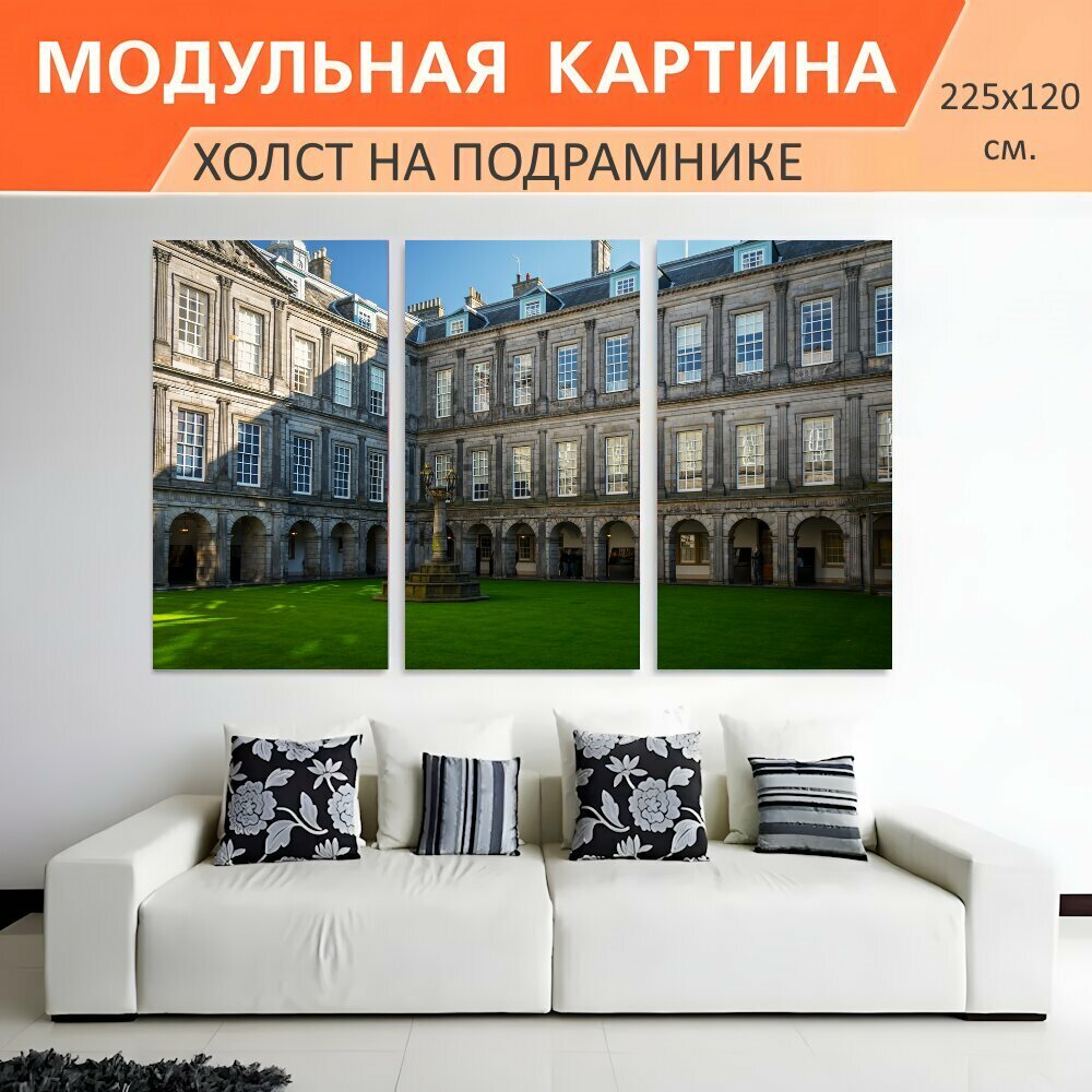 Купить Модульная картина на холсте "Холирудский дворец, эдинбург, эдинбургский дворец" триптих на подрамнике 225х120 см. для интерьера