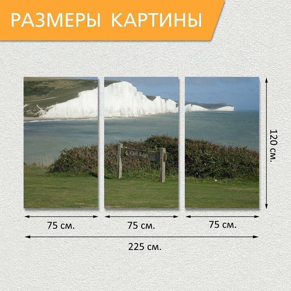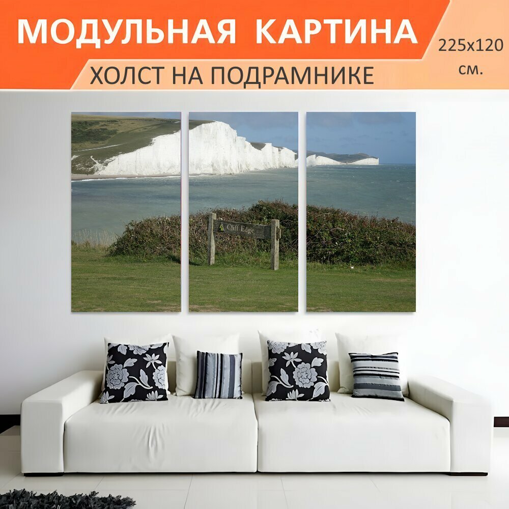 Купить Модульная картина на холсте "Семь сестёр, белые скалы, море" триптих на подрамнике 225х120 см. для интерьера