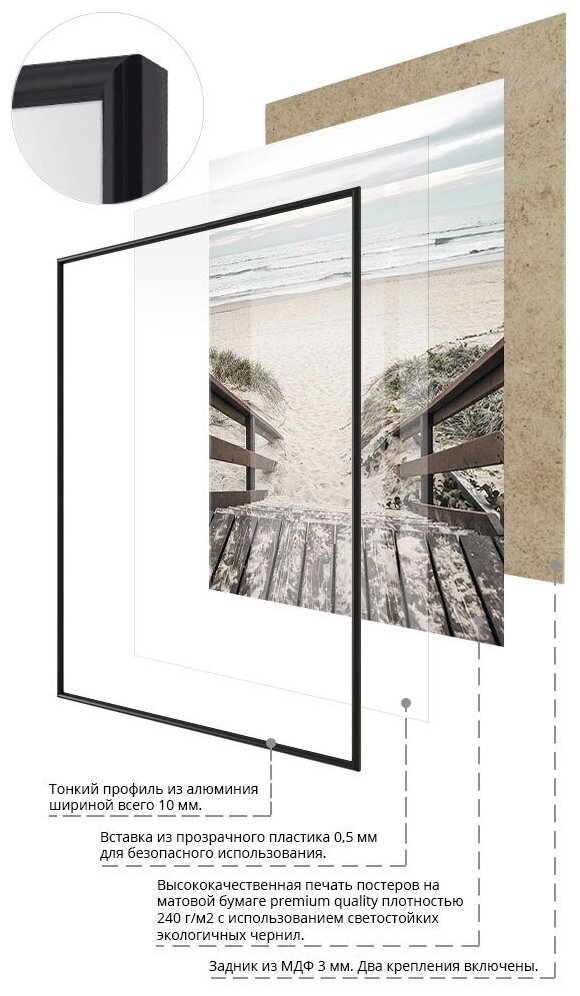 Купить Постеры для интерьера Postermarkt Набор из двух постеров в черных рамках 50х70 см, постеры картины для интерьера в черных рамках, Набор постеров №198