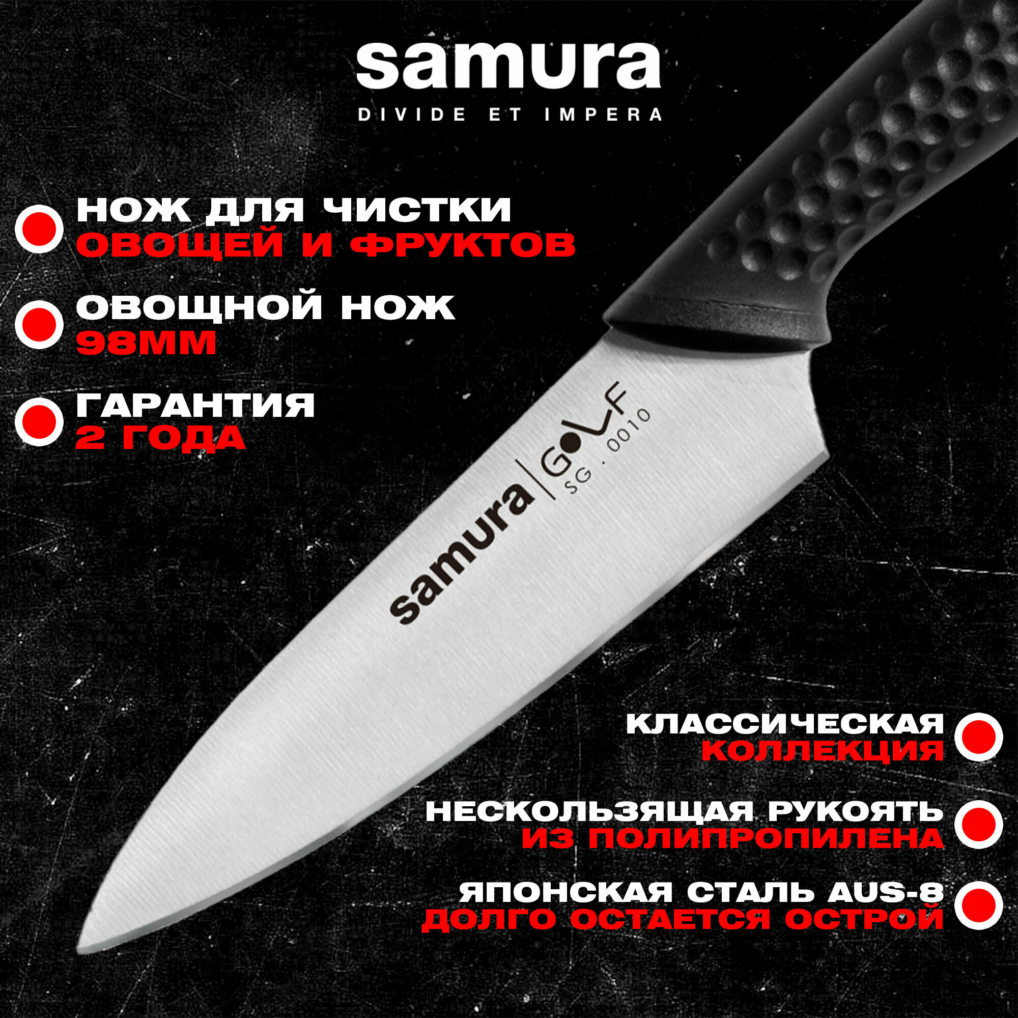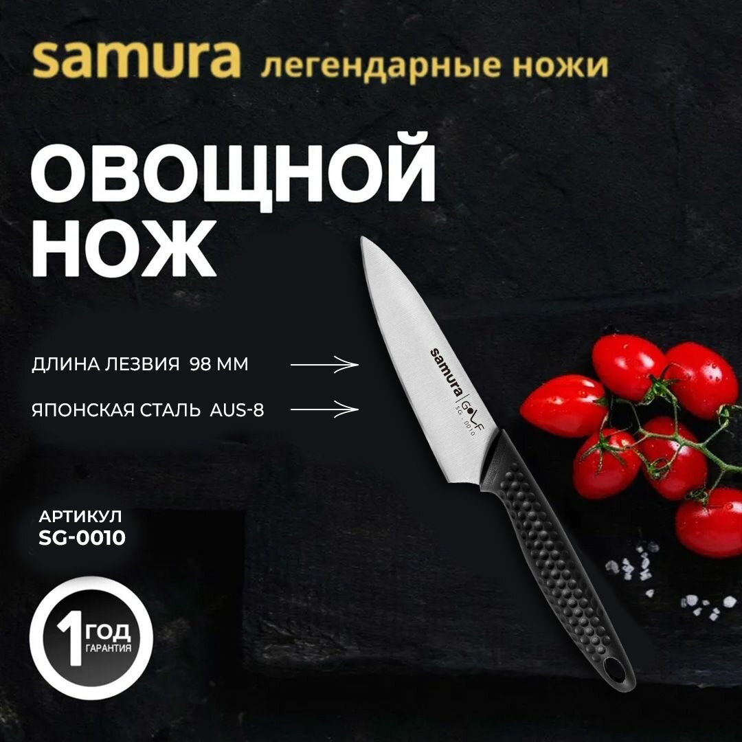 СохранитьНож кухонный для овощей Samura Golf SG-0010, 9.8 см, пластиковая рукоять, черный интересное: