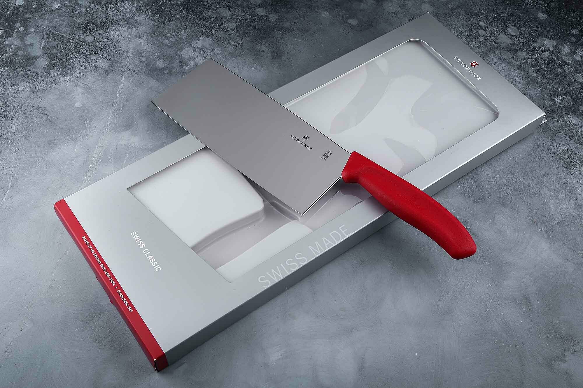 Купить Нож шеф-повара VICTORINOX Swiss Classic "китайский стиль", лезвие 18 см, красный, в коробке 6.8561.18G