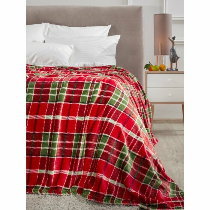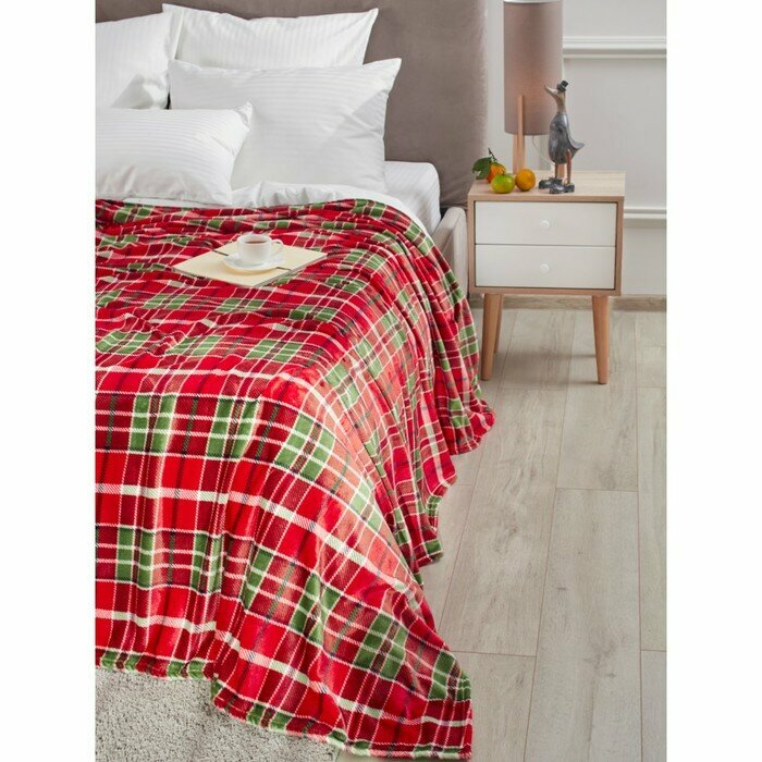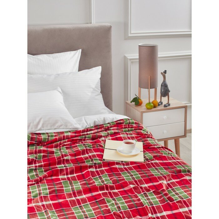 Плед на кровать/180x200/велсофт/плед на диван/2 спальный/покрывало/Guten Morgen