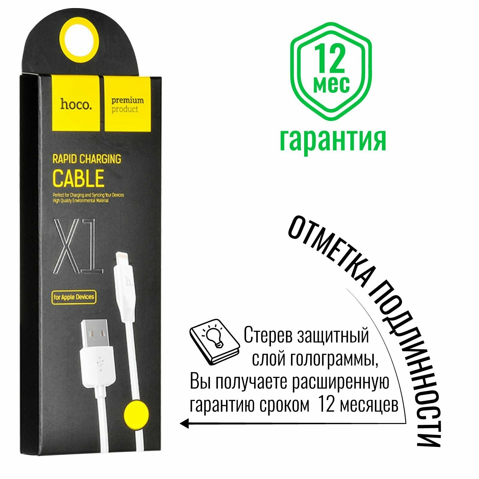 Кабель Hoco Rapid X1 USB - Apple Lightning для айфона, айпада, Iphone, ipad, airpods, 1 м, 1 шт, белый