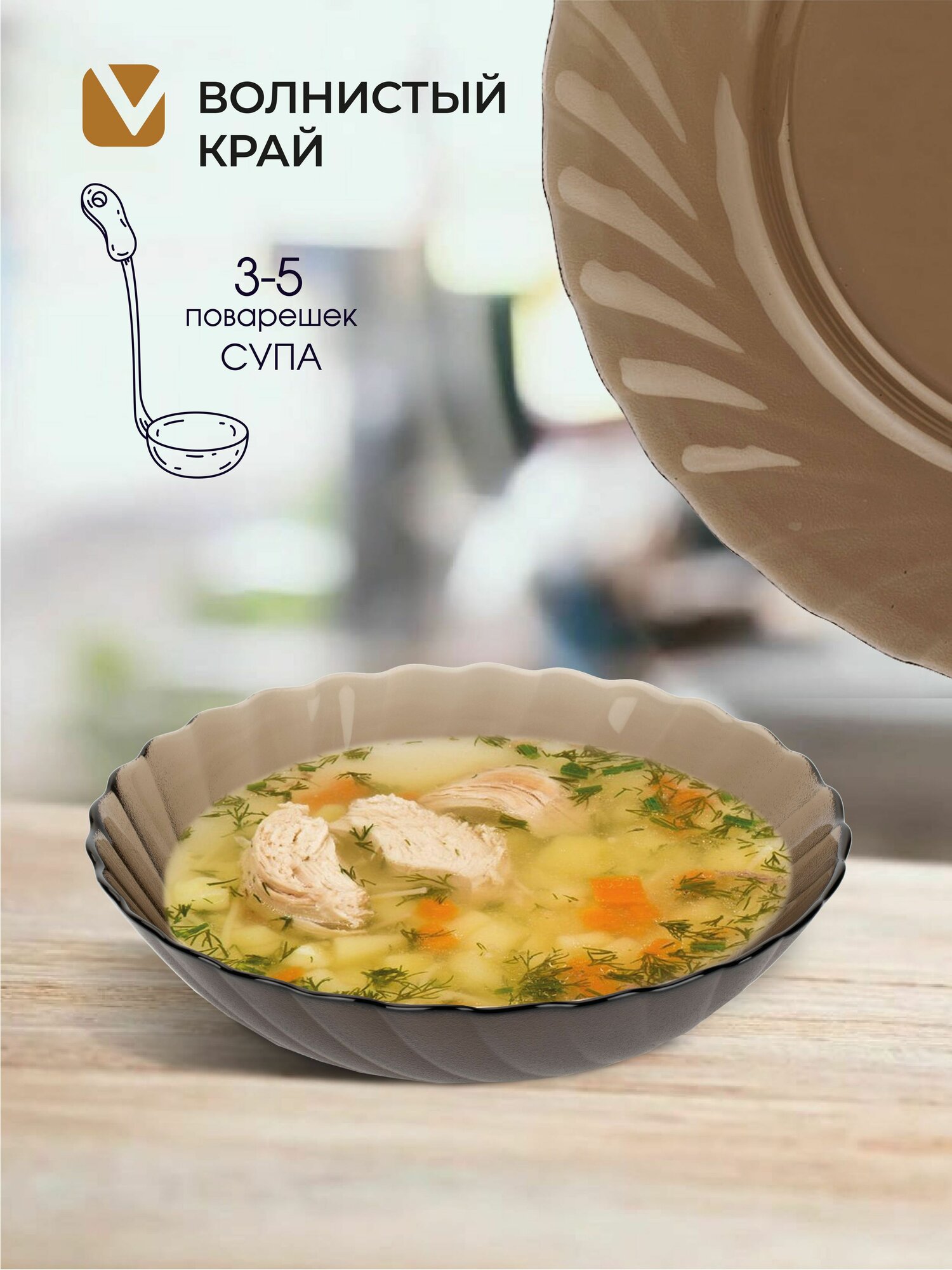 | Плюсы: | Замечательные тарелки,как для первых,так и для вторых блюд.Форма конусообразная,края по ободку волнистые,цвет нежный коричневый,не тёмный,на столе смотрятся празднично и эстетично.Прочность тарелки отличная,следов от вилки и ножа не оставляет.Диаметр 20,5 см.,высота бортика 6 см.Покупкой и стоимостью довольна.Спасибо. |