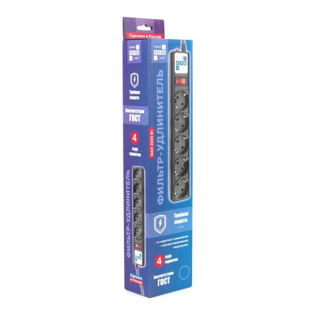 Купить Сетевой фильтр Power Cube B 1,9 м 5 розеток, черный, 10А/2,2кВт (SPG5-С2)
