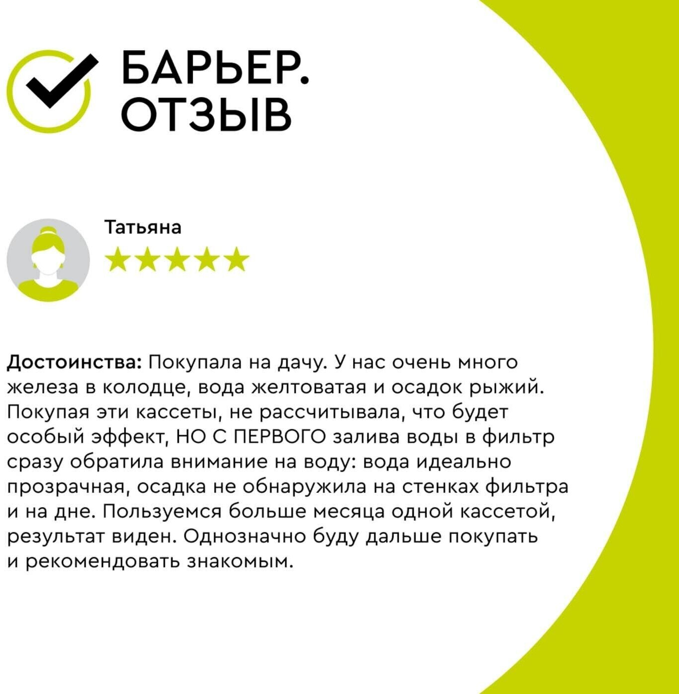 | Отзыв: | Рекомендую тем, у кого вода с большим содержанием железа |