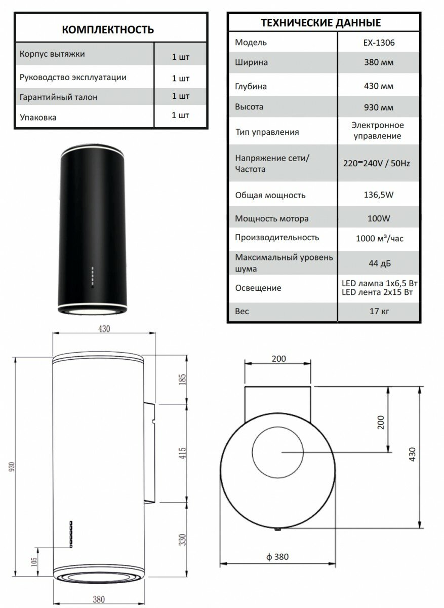 Островная вытяжка Exiteq EX-1306 black интересное: