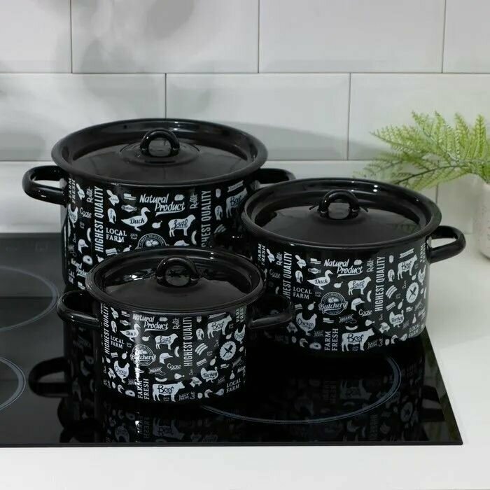 Набор эмалированных кастрюль 1,5л;2,9л;4,5л Вологда черный СтальЭмаль