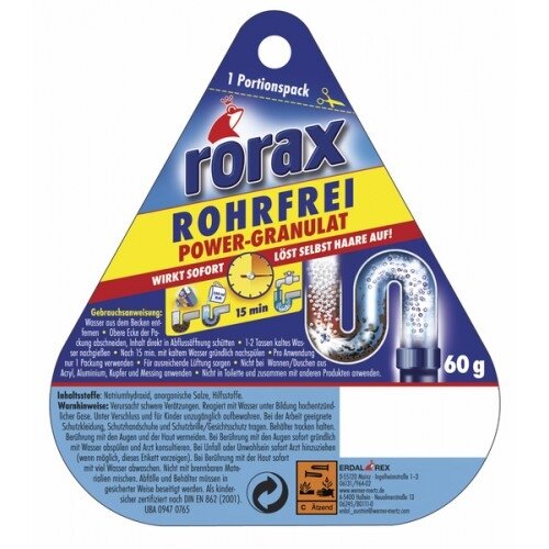 Rorax Чистящее средство в гранулах для сливных труб, 60 гр
