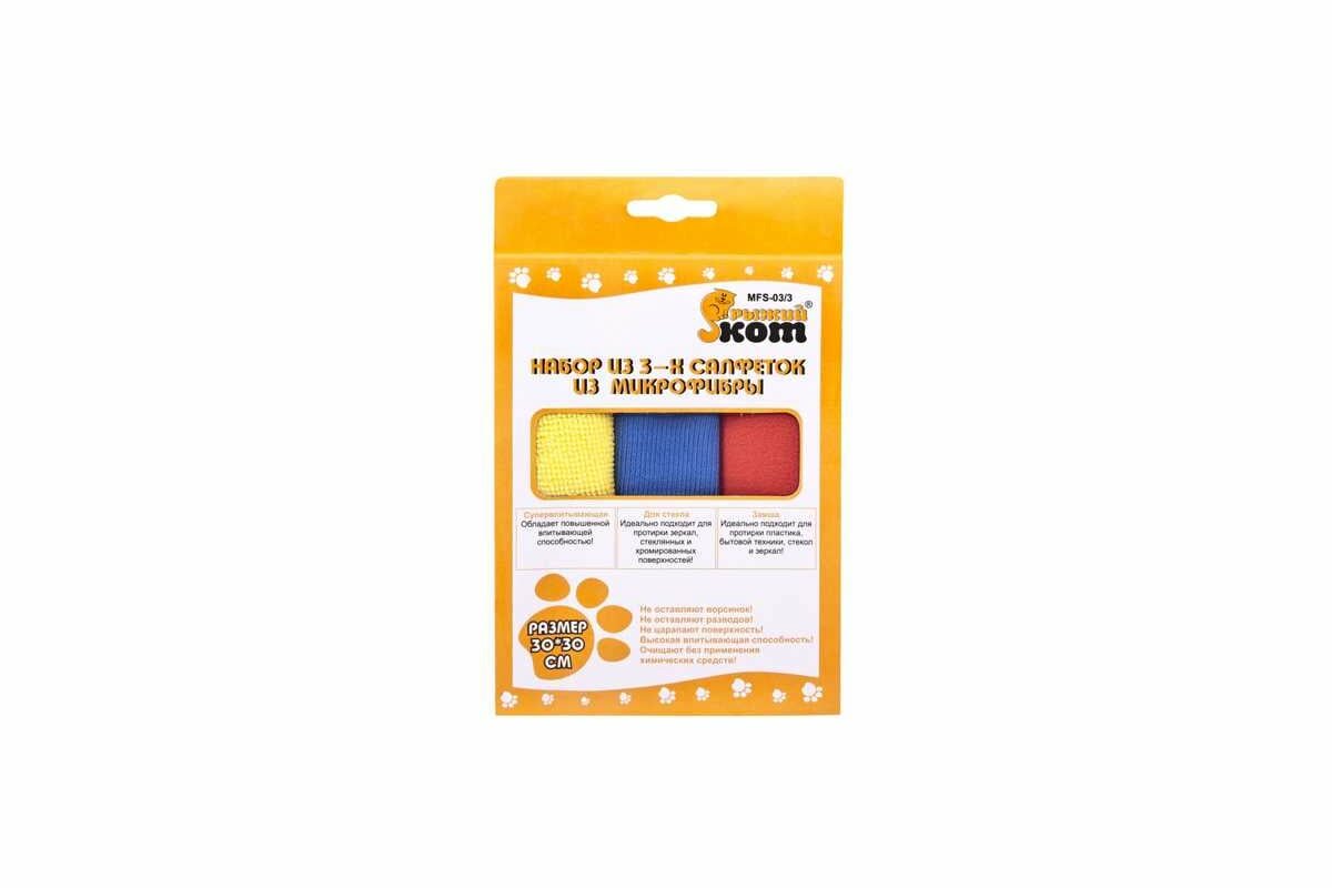 Купить Салфетка д/уборки MFS-03/3 , 30*30см, набор 3шт/уп, цена за уп, микрофибра, коробка 310240 Рыжий Кот