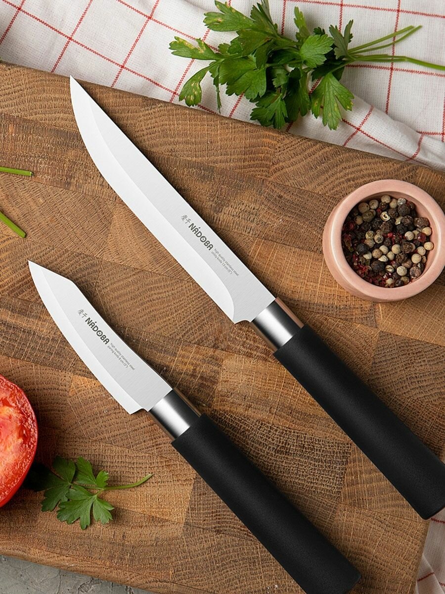Ну идите и покупайте. А я держал и точил и резал. Поверьте Nadoba - не "вышка" ( а зачем вышак на кухне без пальцев остаться), это нужно профи который режет весь день и почти не смотрит на руки во время реза. И даже такие ножи, нужно подтачивать, а точнее наводить. Тупиться любой нож, не считая углеродистых быстрорезов (типо S-390 и т.п. с твёрдостью клинка под 70 ед.). Но кому он нужен на кухне для обычного "батонинга" и совсем не интенсивной нарезки с толщиной обуха(полотна ножа) не менее 3.2 мм. А то что дороже 3000р, как правило не сильно лучше, а иногда бывает и похуже. Про более дешёвые -вообще разброс по качеству сталей капитальный. Так что Nadoby и особенно ножи этой серии рекомендую к покупке. Попробуете поймёте, тем более за такие деньги. ? |