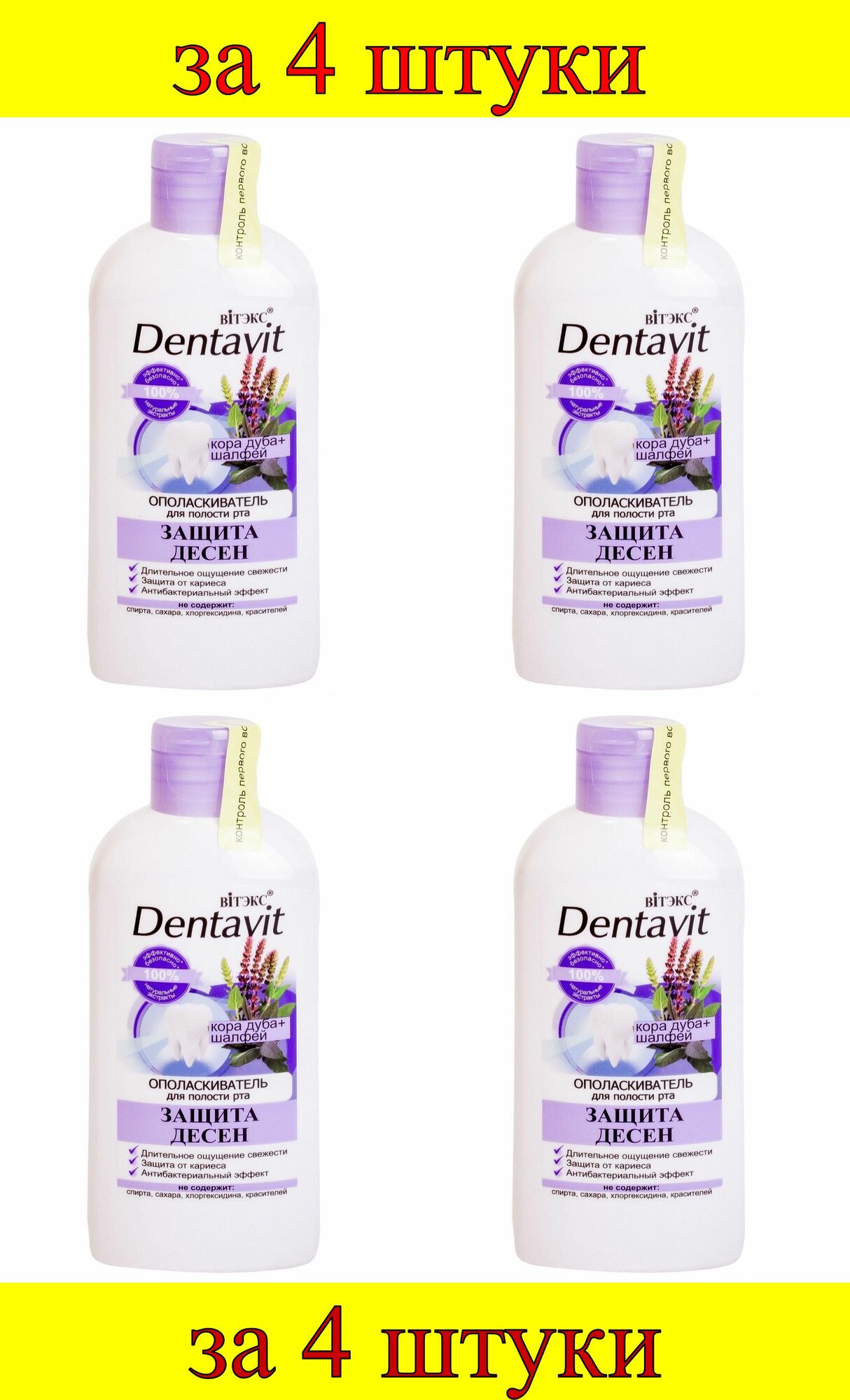 Купить 4 шт x Ополаскиватель "Дентавит" Кора дуба+Шалфей защита десен