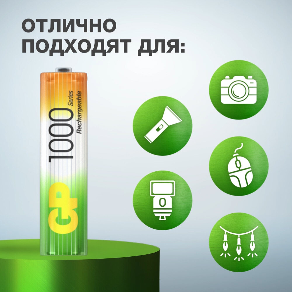 Аккумулятор Ni-Mh 1000 мА·ч 1.2 В GP Rechargeable 1000 Series AAA, в упаковке: 4 шт.