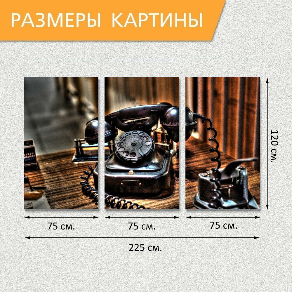 Модульная картина на холсте "Музей, телефон, камеры" триптих на подрамнике 225х120 см. для интерьера интересное: