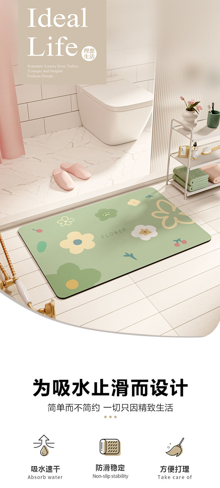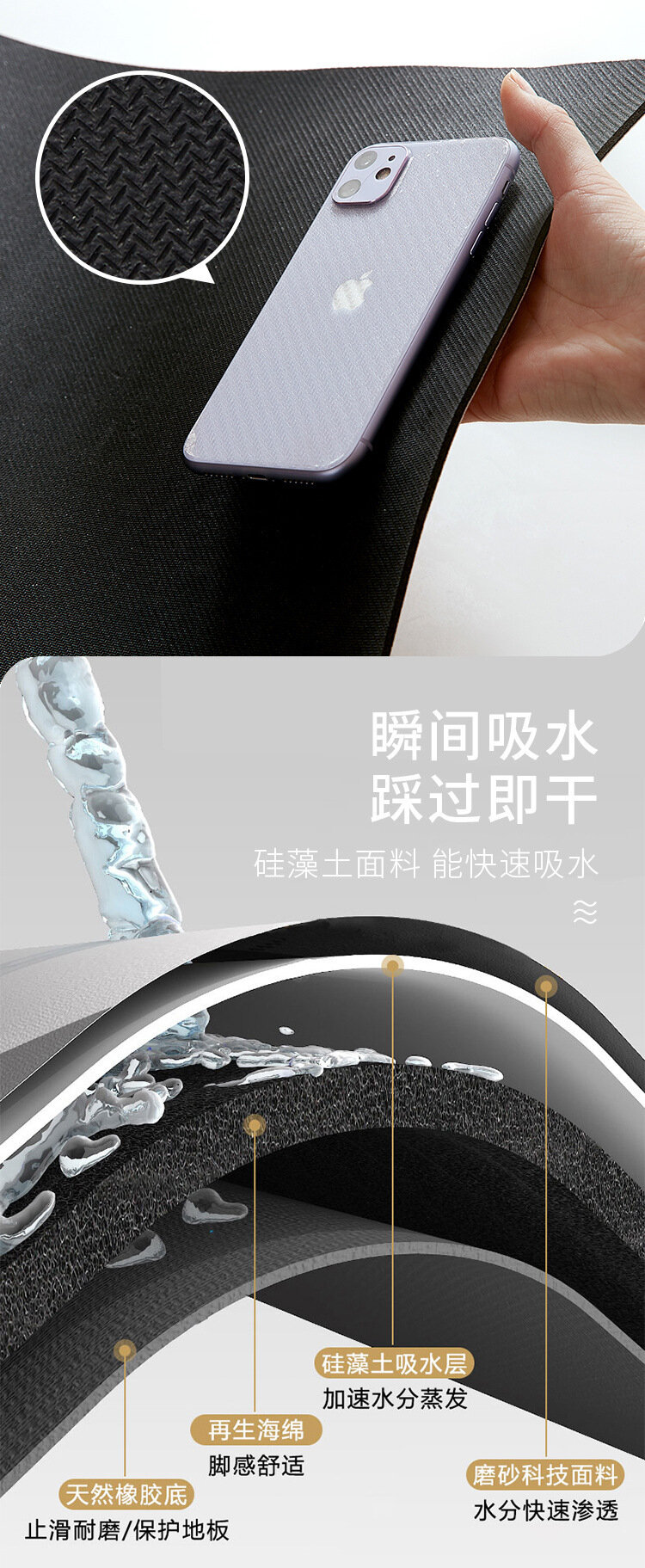 Коврик для ванной, 40x60 см, диатомовая водоросль интересное: