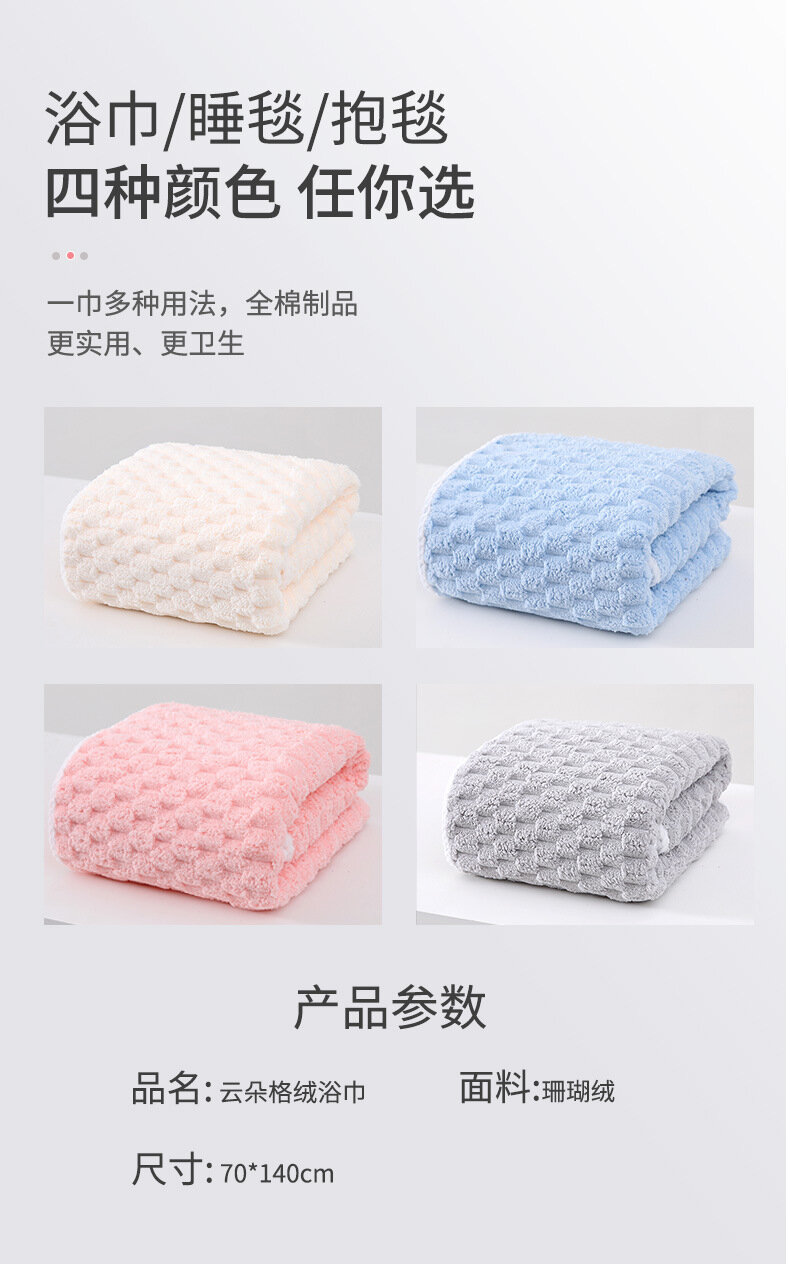 Полотенце Cloud grid, коралловый флис, 70x140 см интересное: