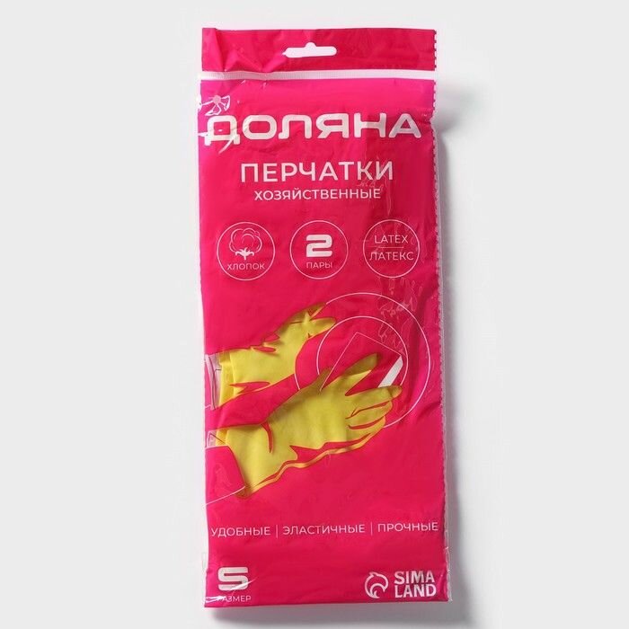 Перчатки хозяйственные латексные Доляна, 2 пары, размер S, 28 г, ХБ напыление, цвет жёлтый интересное: