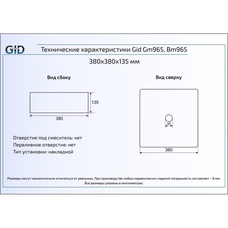 Накладная раковина Gid Bm965 38.5х38.5 черная, матовая 53339