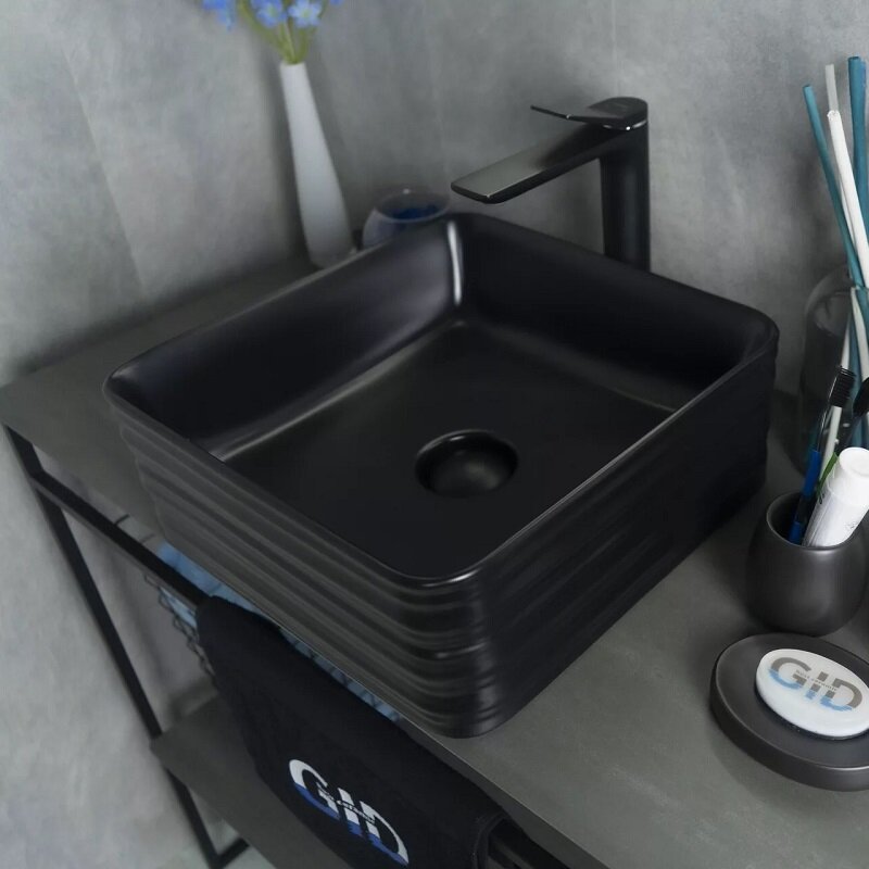 Накладная раковина черная 38x38х13.5 см, Gid, Bm965